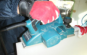 電機かんなで表面を数ミリ削っていきます。 キズや凹みがが何処まで深いのか… まな板の厚さをどの程度残すのか… 厚みを残したままキズを取る…など 細かい部分まで打ち合わせをし、要望に合わせた仕上がりをプロの研磨士が実現させます。